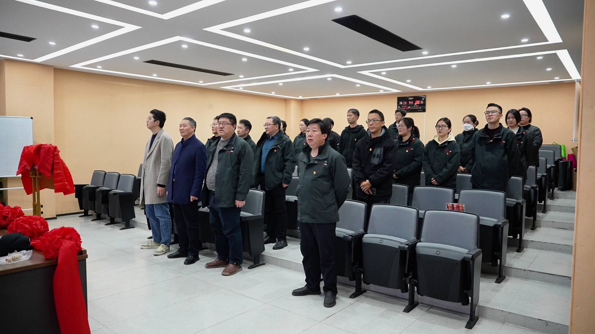公司管理层、全体党员、职工代表以及上级党组织负责同志齐聚一堂,共同参与了此次活动。揭牌仪式在庄严的国歌声中开始。