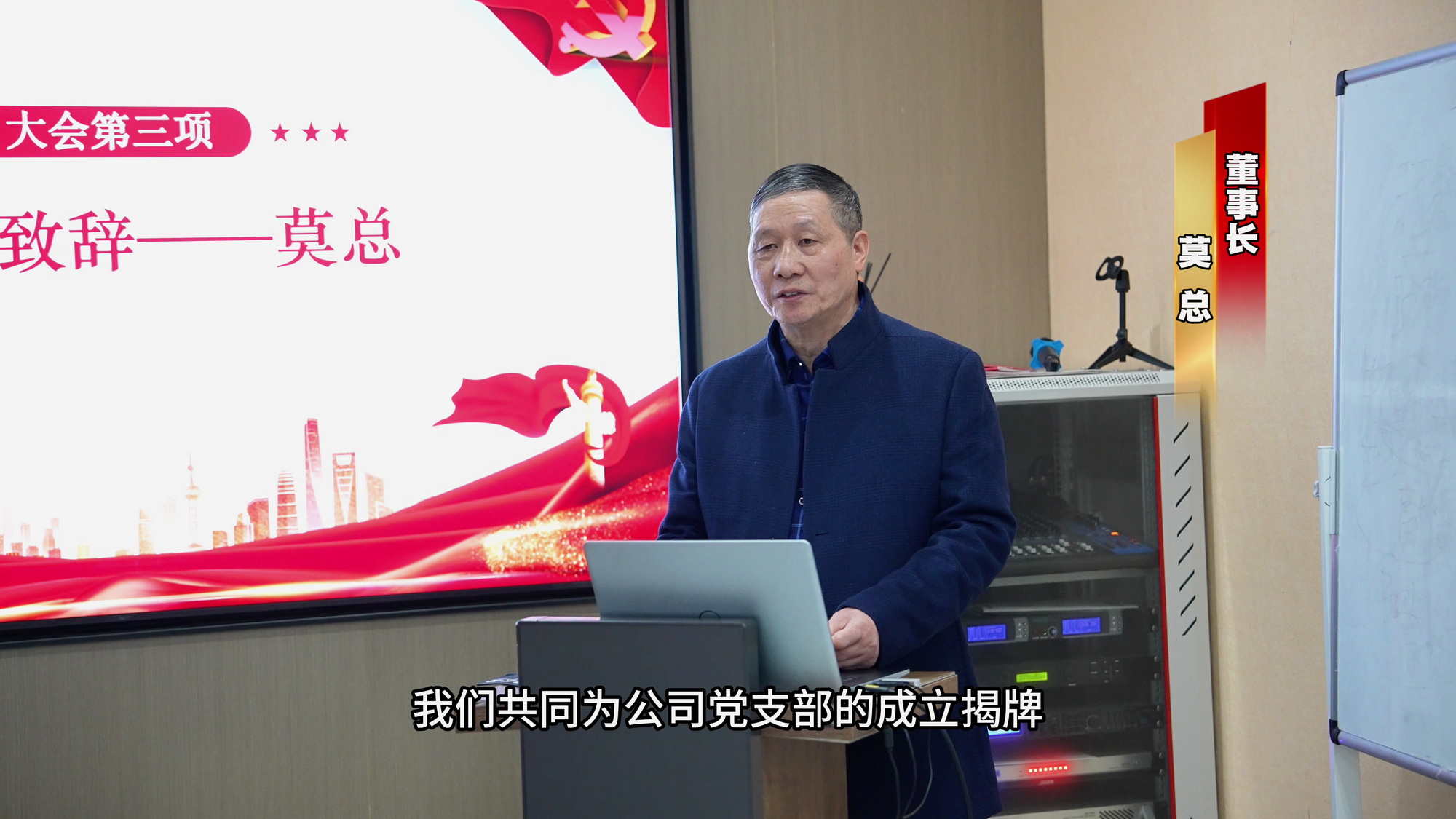 公司董事长莫总在致辞中回顾了企业的发展历程,深刻阐述了坚持党的领导对企业高质量发展的根本性意义。他表示,党支部的成立是公司政治生活中的一件大事,公司将全力支持党支部各项工作,希望党支部能凝聚合力,推动公司核心竞争力不断提升。